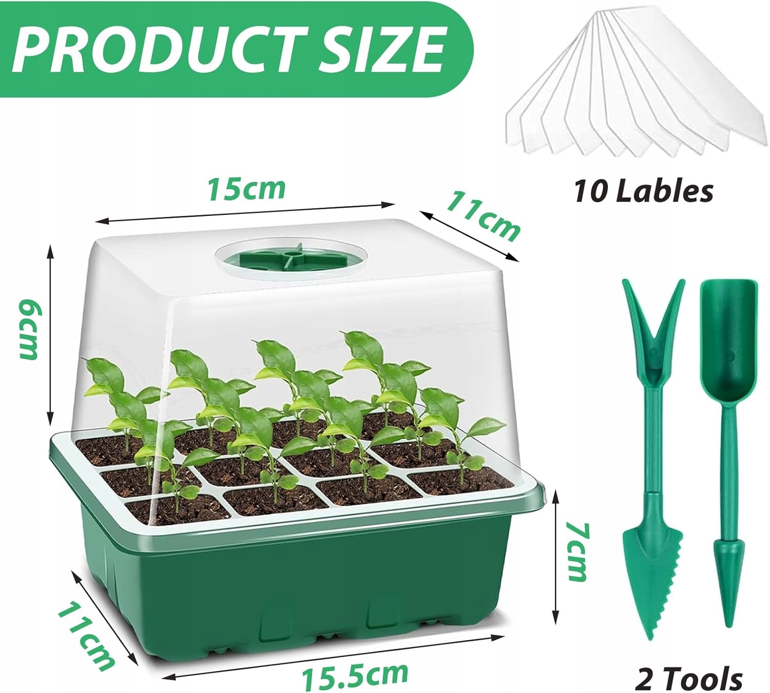 - 【Размер】: Мини-теплица имеет размер шасси 15,5 х 11 х 7 см, а каждая прозрачная крышка — 15 х 11 х 6 см, всего 60 штук. Мини-размер для выращивания идеально подходит для использования в помещении, офисе, подоконнике, террасе, балконе, саду, лаборатории растений, теплице.
