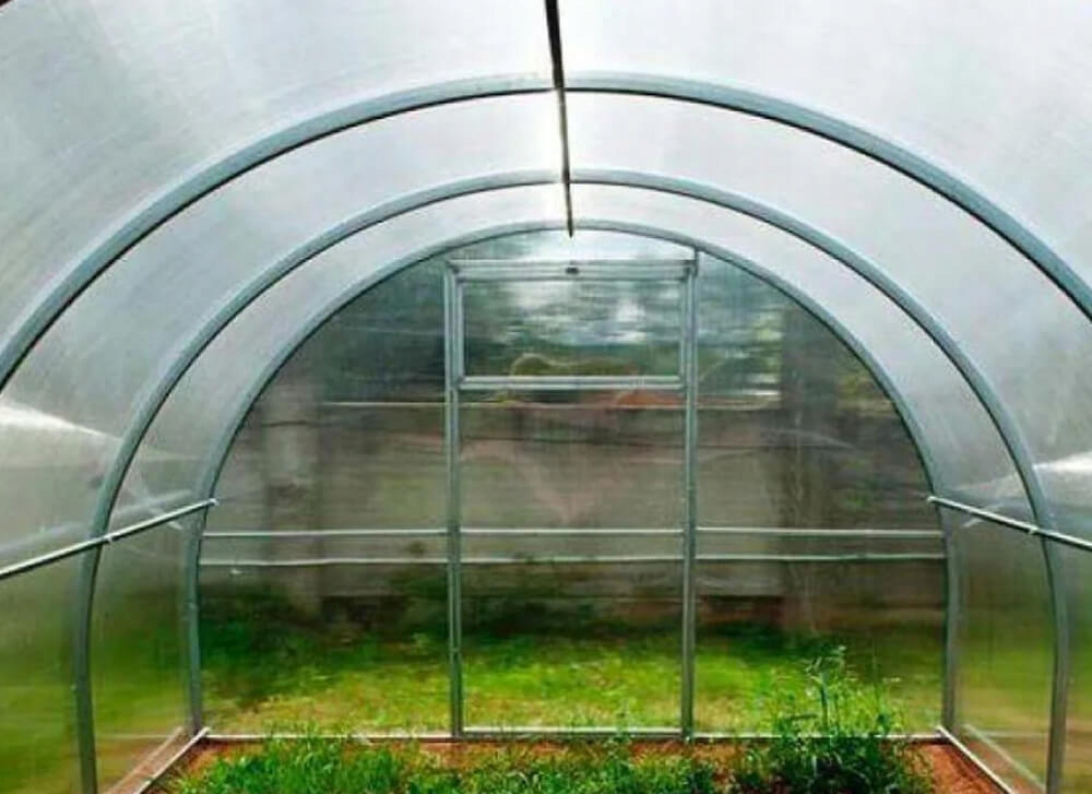 - Обшивка теплицы: камерный поликарбонат (устойчив к УФ-лучам и граду)