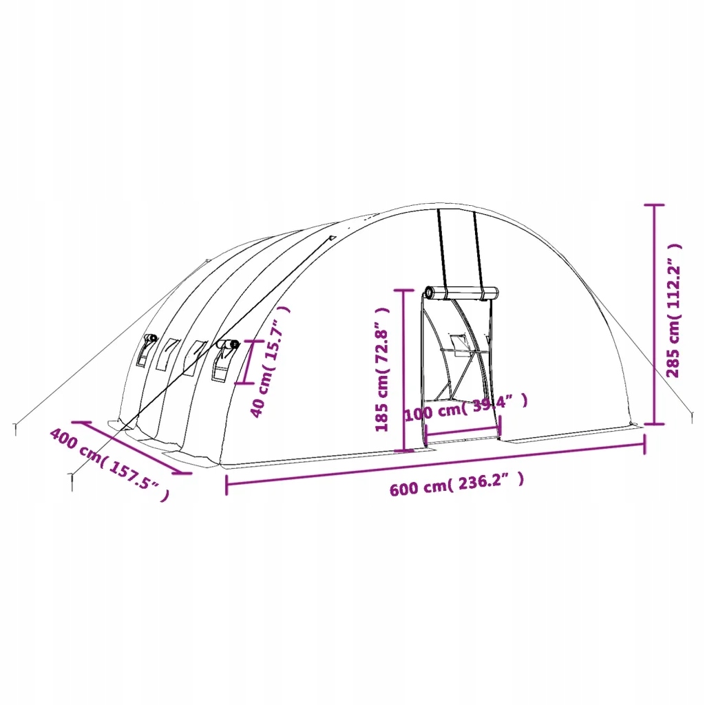 Теплица со стальной рамой, зеленый, 24 м², 6x4x