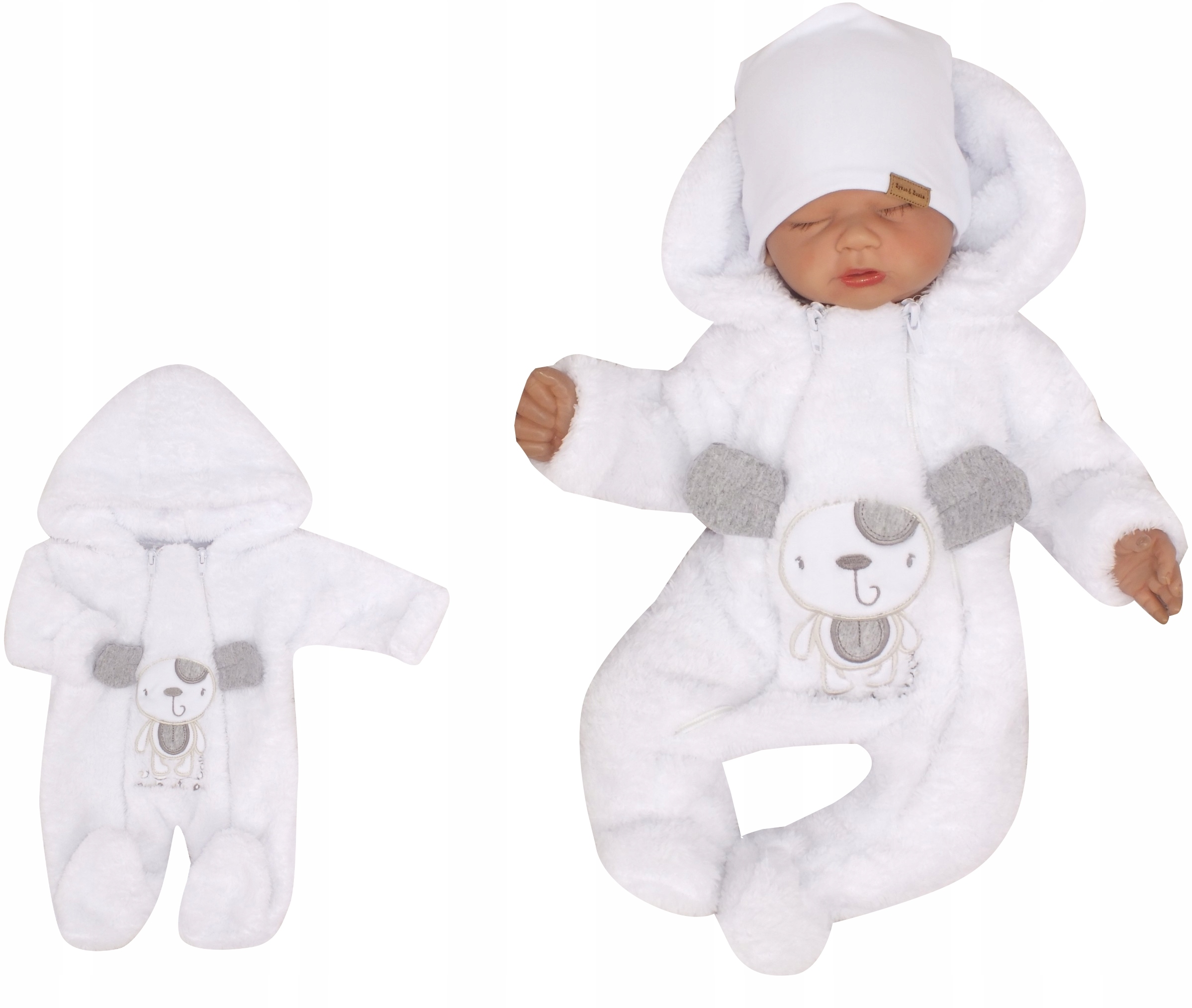 Костюм украшен красивой вышивкой мишки с ушками. .