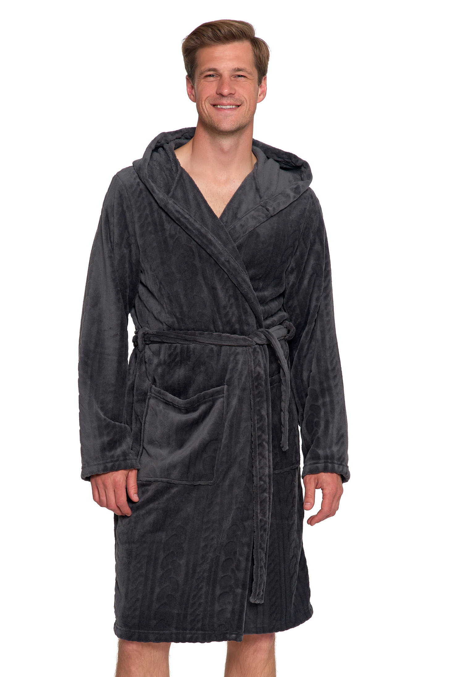 ТЁПЛЫЙ МУЖСКОЙ ХАЛАТ В ПОДАРОК, ГАЛСТУК С КАПЮШОНОМ, ПУШИСТЫЙ МОРАЖ М