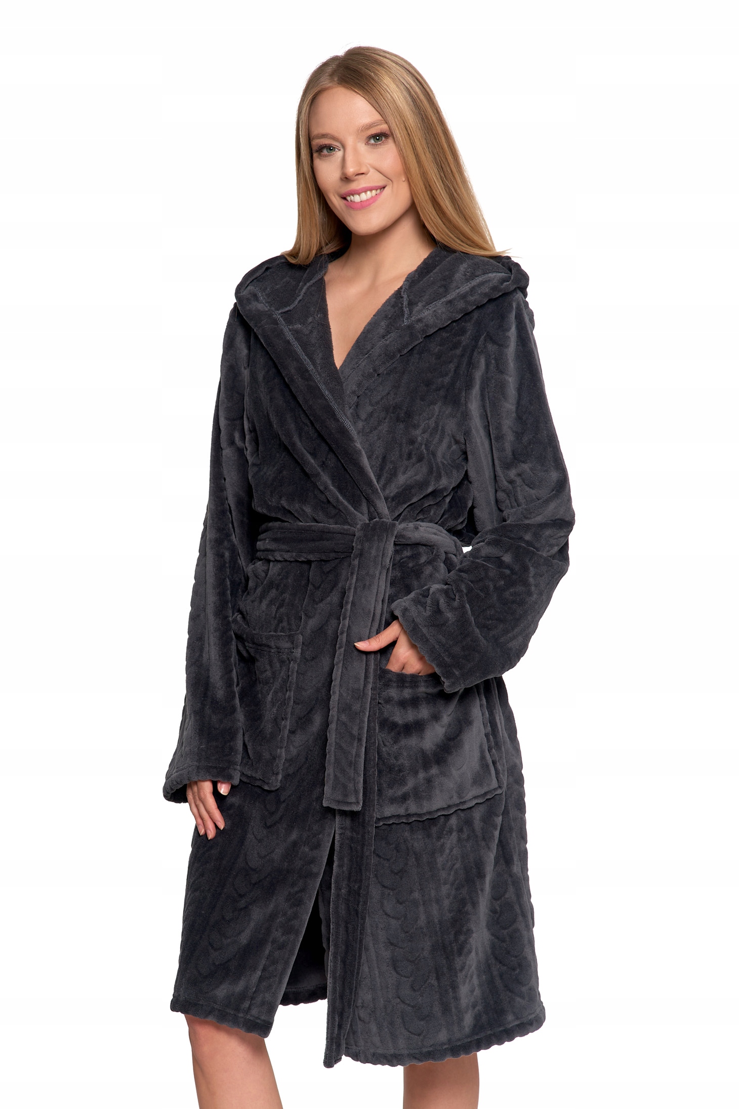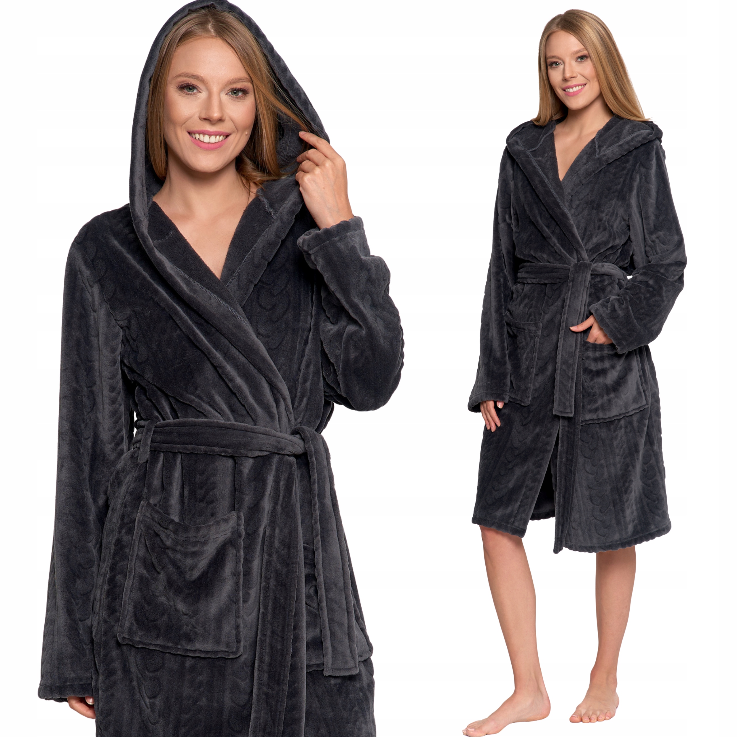 ТЁПЛЫЙ ЖЕНСКИЙ ХАЛАТ В ПОДАРОК, ГАЛСТУК С КАПЮШОНОМ, ПУШИСТЫЙ МОРАЖ М