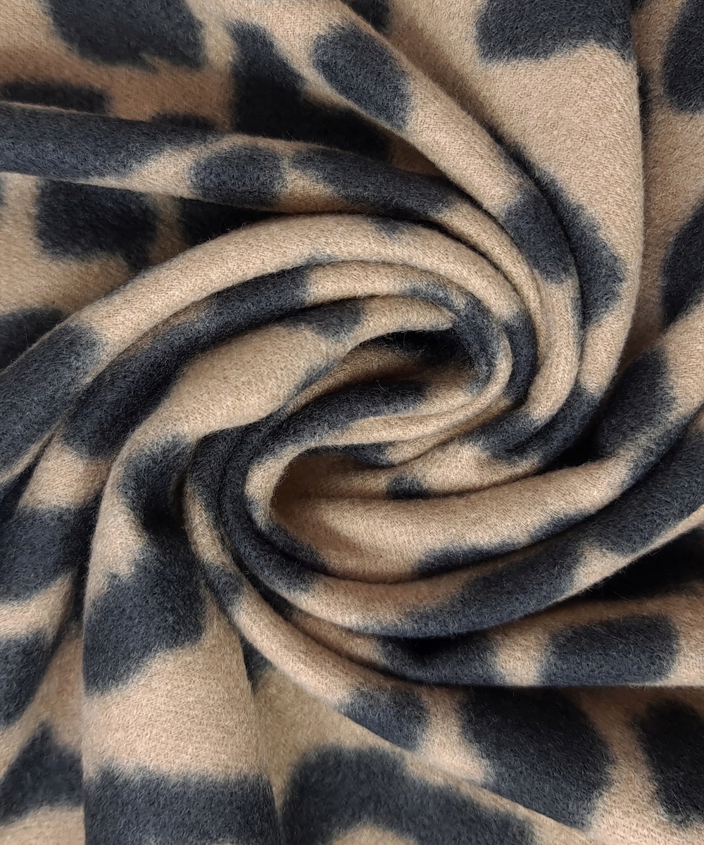 Теплый шерстяной шарф со стильным леопардовым узором, отделанный бахромой