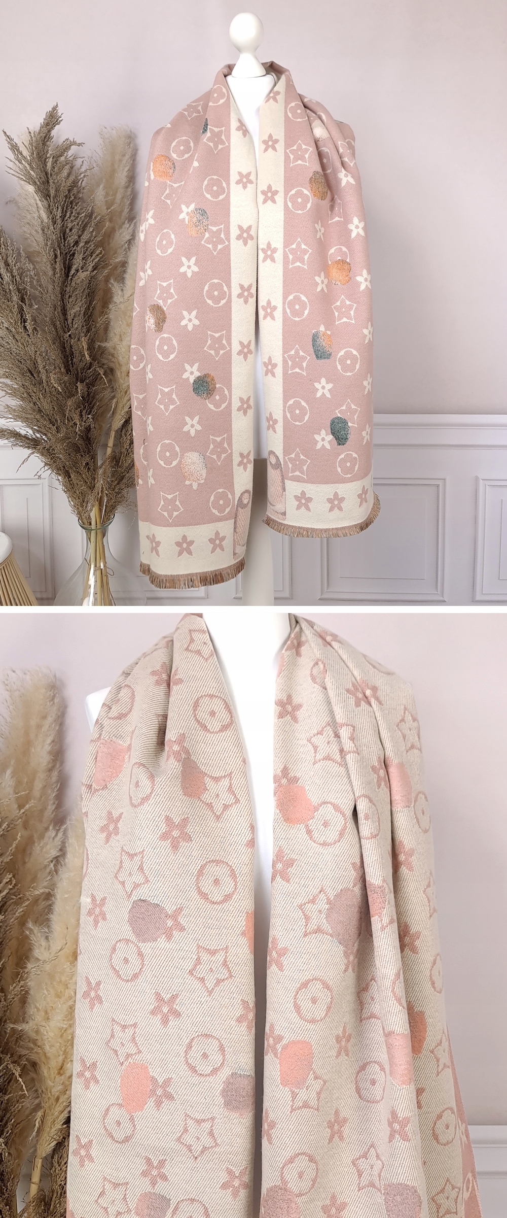 Шарф ДВУХСТОРОННИЙ, а это значит, что его можно носить и укладывать разными способами, получая разный эффект каждый раз