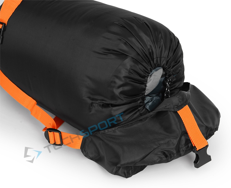 Чехол также имеет капюшон, защищающий упакованный спальник, а одна из лямок имеет пряжку, что делает доступ к спальному мешку очень удобным. Дополнительно спереди имеется ручка для переноски: