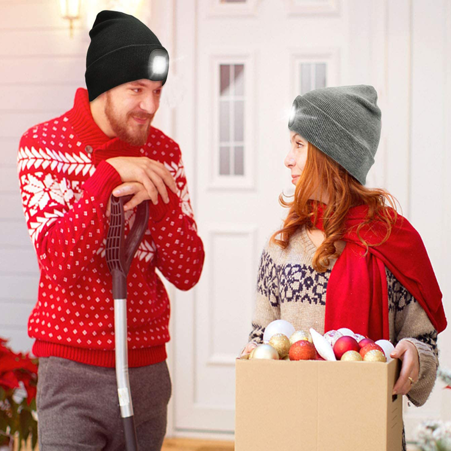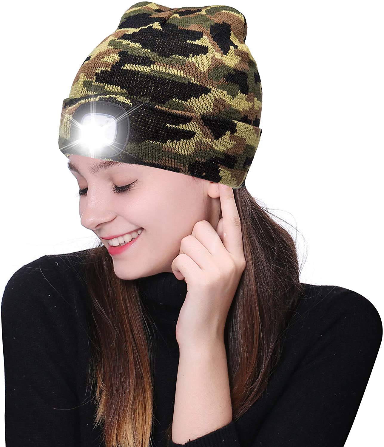 - Теплая вязаная шапка является еще и фонариком без помощи рук.