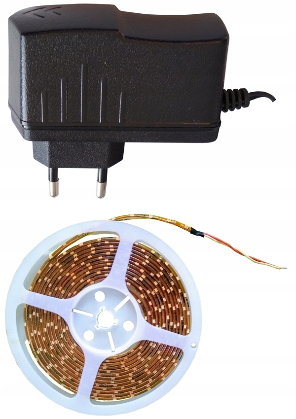 ТЕПЛАЯ БЕЛАЯ СВЕТОДИОДНАЯ ЛЕНТА 5 МБ РУЛОН + БЛОК ПИТАНИЯ 12 В постоянного тока 1,5 А - КОМПЛЕКТ