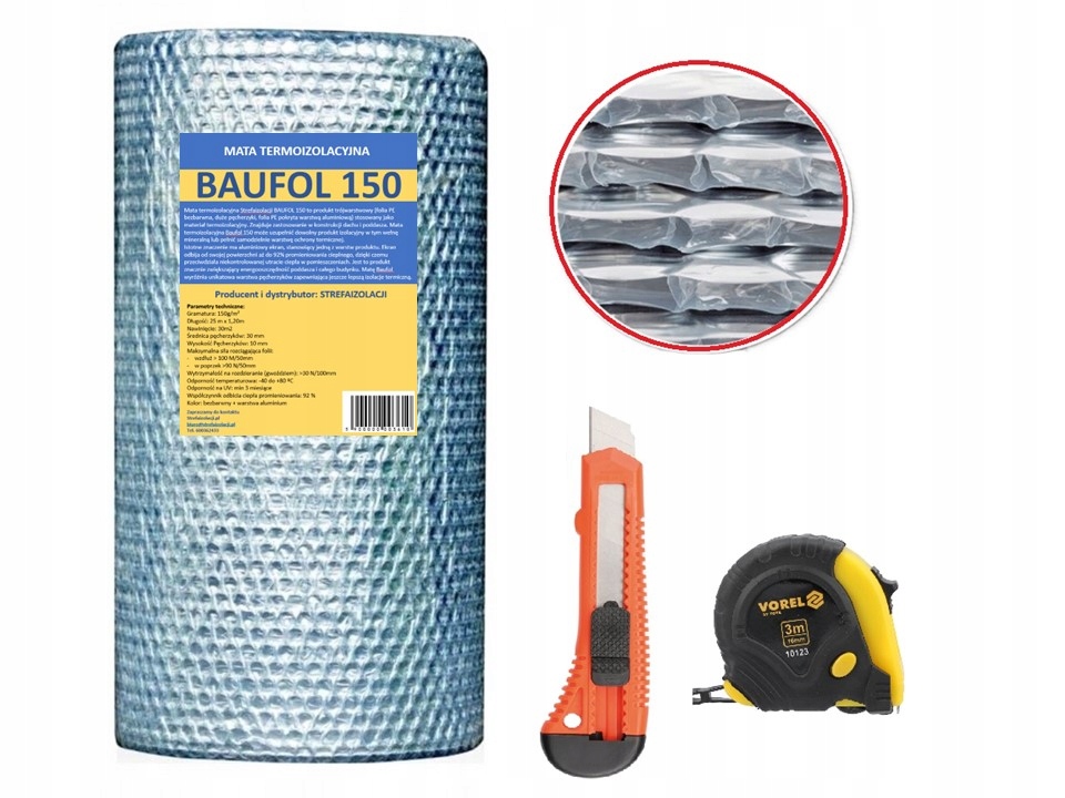 ТЕПЛОІЗОЛЯЦІЙНИЙ КИЛИМОК ALU BAUFOL УТЕПЛЕННЯ ТЕРМОЗАХИСТ ДАХУ ГОРИЩА 30м2