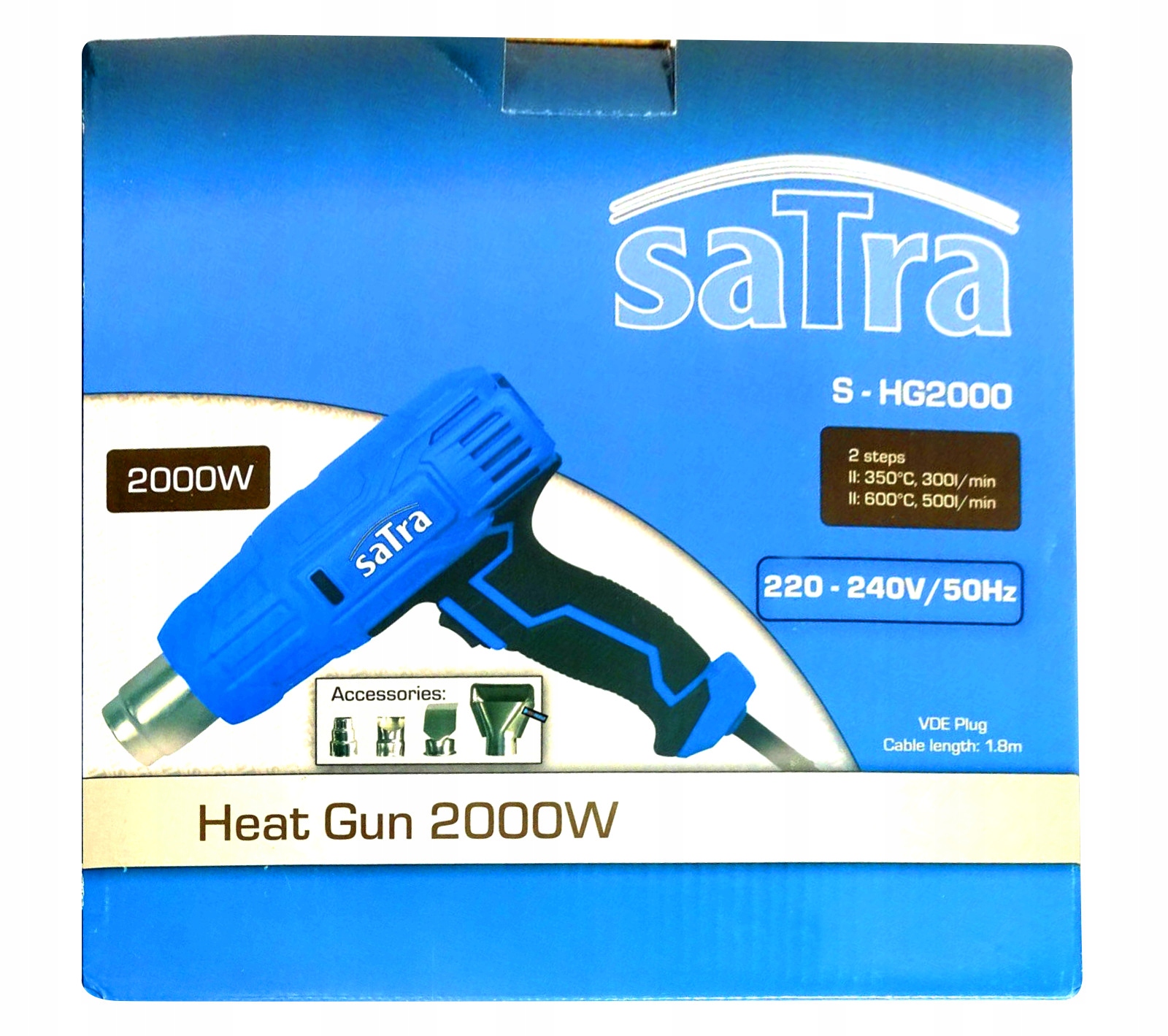 ЭЛЕКТРОВЕНТИЛЯТОР ТЕПЛОВОЙ ПУСКИ 2000ВТ 2 ШЕСТЕРНИ 500 ГРАДУСОВ 4 НАСАДКИ SATRA