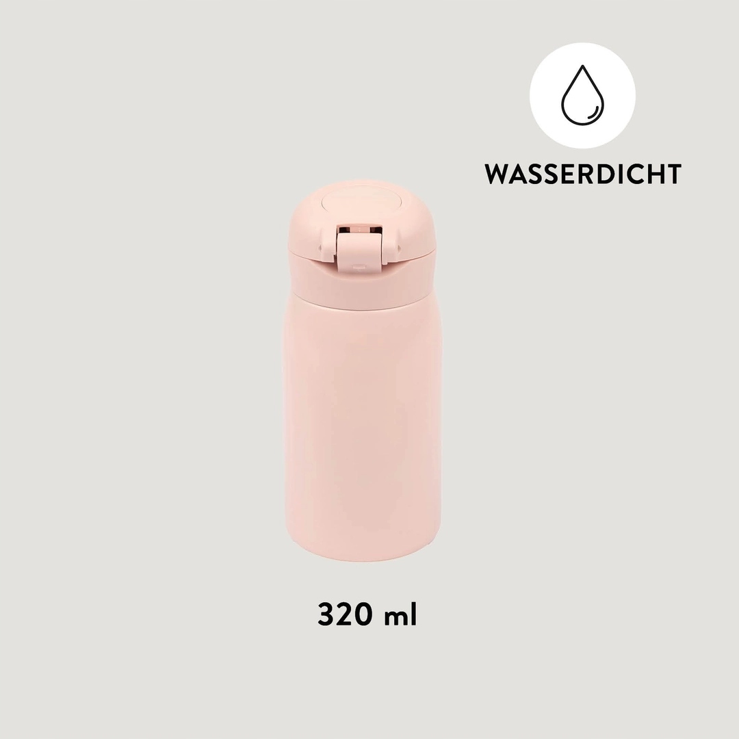 Термическая бутылка для детей 320 мл, идеально подходит для школы и путешествий. Изготовлен из из нержавеющей стали 18/10, сохраняет холодные напитки до 24 часов и горячими до 10 часов. У него есть питьевой жук, плотная гайка PP без BPA и силиконовую прокладку. Это не меняет вкус напитков. Не используйте в посудомоечной машине.