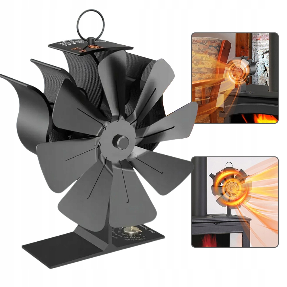 Наш каминный вентилятор или каминный вентилятор, работающий без сети, питается от тепла, выделяемого вашим камином, дровяной печью или печью на гранулах, и автоматически отключается, когда температура поверхности под вентилятором достигает 70°C.