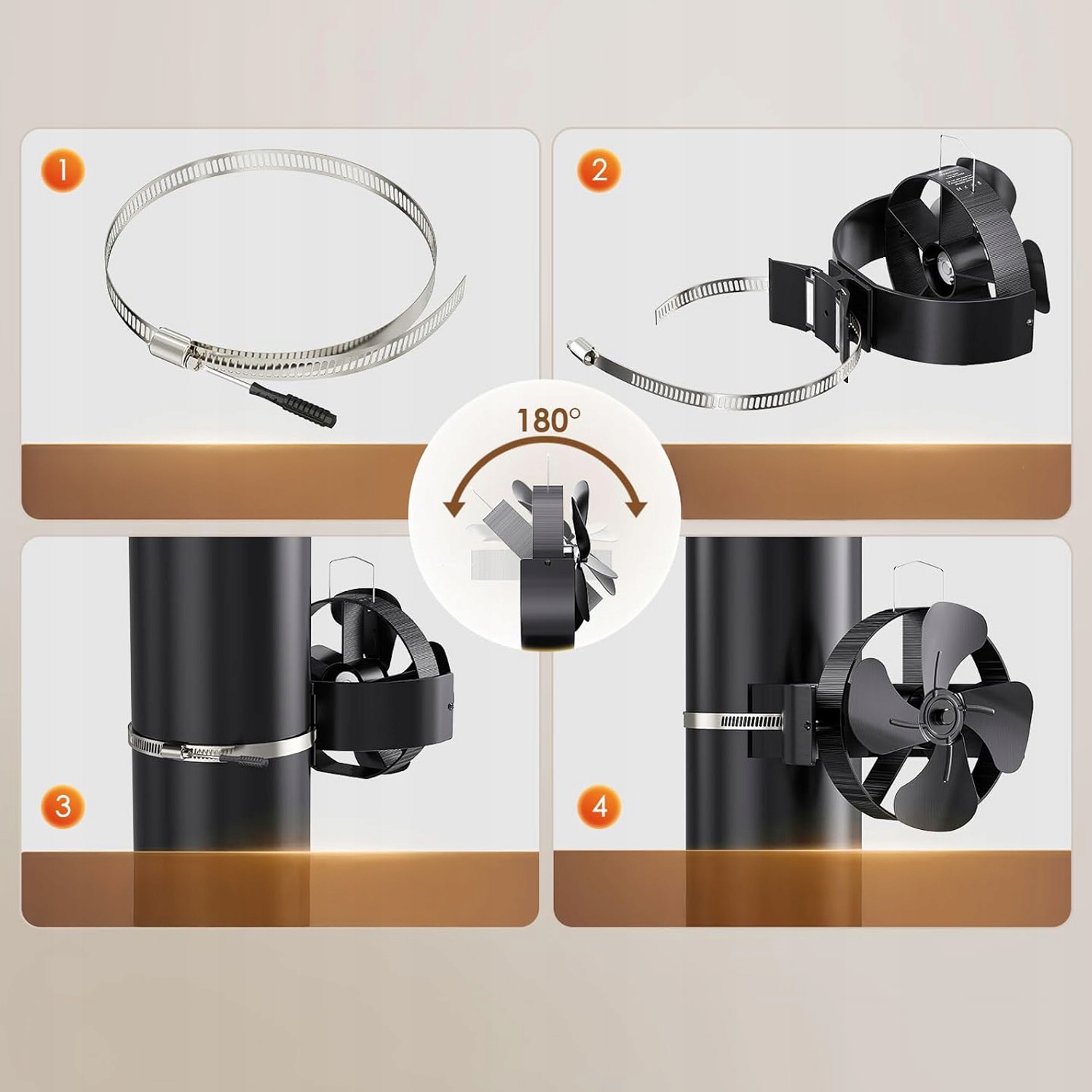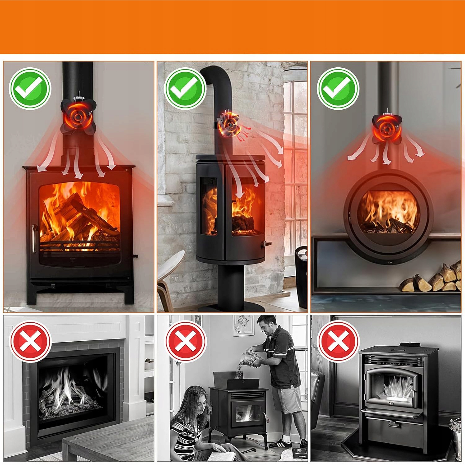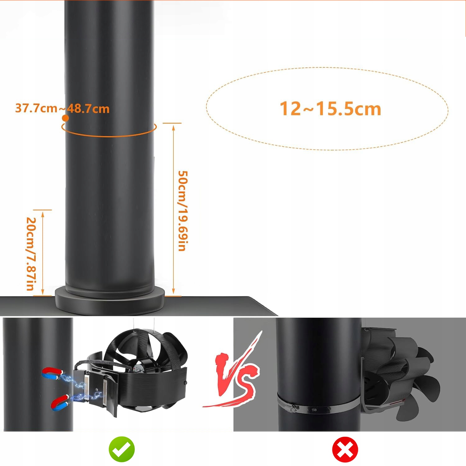♨️ ♨️Два способа установки: Основание каминного вентилятора магнитное, его можно прикрепить к трубе дымохода или положить на камин. Это практичный каминный вентилятор без электричества.