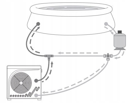 Благодаря С помощью комплекта Bypass можно уменьшить расход воды, тем самым продлевая время пребывания воды в тепловом насосе, что приводит к более быстрому нагреву воды в бассейне. Для эффективного использования теплового насоса мы рекомендуем поддерживать как можно более низкий расход воды в пределах заданных технических данных.