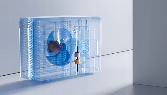 Эффективное размораживание обеспечивает использование горячего охлажденного газа с использованием 4-значного клапана b> go японская компания Saginomiya. Изменив направление потока хладагента и направляя его в виде горячего газа непосредственно от компрессора на испаритель (вместо конденсатора), что означает, что размол очень короткий, а потери энергии невелики.