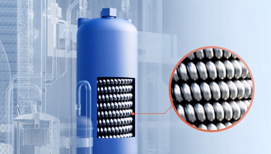 Теплообменник изготовлен из титана спирали b>, а затем покрыт ПВХ, что обеспечивает более длительную жизнь на 50%, а также на 50% более высокую производительность по сравнению с другими теплообменниками. В 2025 году зона теплообмена была увеличена на 30%.