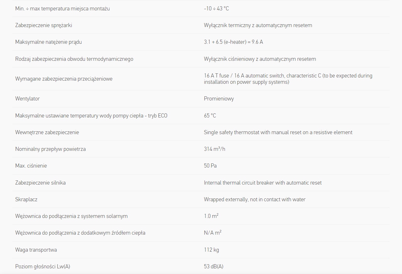 - Нагревает воду до 65°С только при работе от теплового насоса,