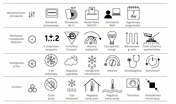 - Недельный программатор - Таймер позволяет запрограммировать автоматическую, почасовую работу теплового насоса в течение недели
