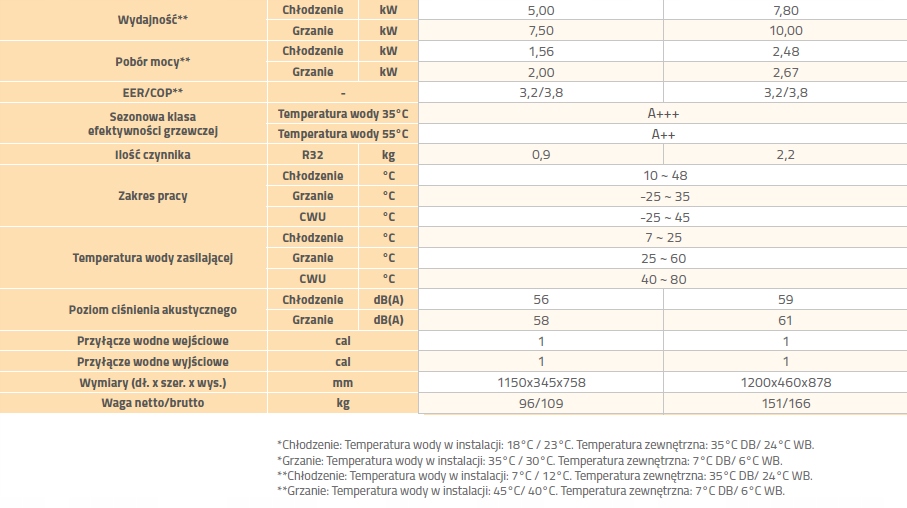 Производительность: Нагрев 7,50 кВт, Охлаждение 6,80 кВт p>