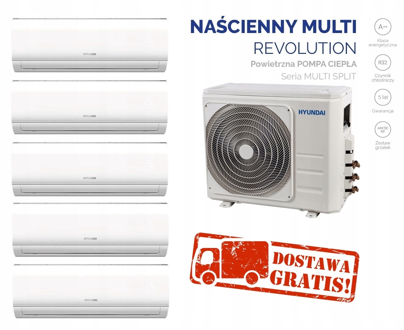 Тепловой насос воздух-воздух Multi Split от Hyundai 4x 2,9 кВт + 1x 3,8 кВт - пять внутренних блоков с модулями WiFi, пультами дистанционного управления + внешний блок с арктическим комплектом (зимний пакет).