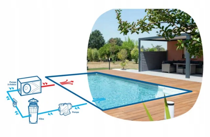 Тепловые насосы — это современные и экологические устройства, используемые для нагрева и охлаждения. Они являются наиболее выгодным решением там, где ожидается комфортная и стабильная температура воды в бассейне. Независимость теплового насоса «воздух-вода» от солнечного света обеспечивает сколь угодно длительное время работы и, следовательно, достижение температуры воды. указано пользователями. бассейн.