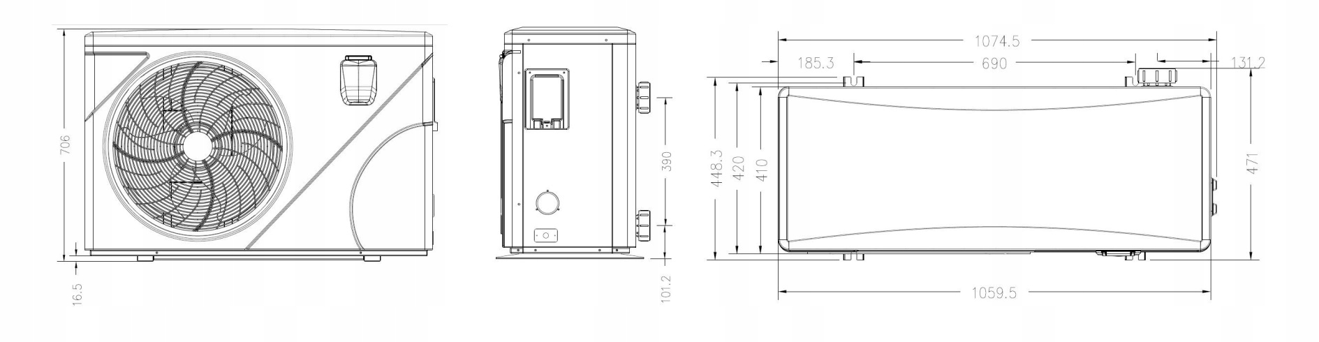 Вода из бассейна подается в тепловой насос с помощью циркуляционного насоса. Там она протекает через титановый теплообменник, где передается тепловая энергия, захваченная из воздуха. Затем, после достижения соответствующей температуры, вода перекачивается обратно в бассейн.