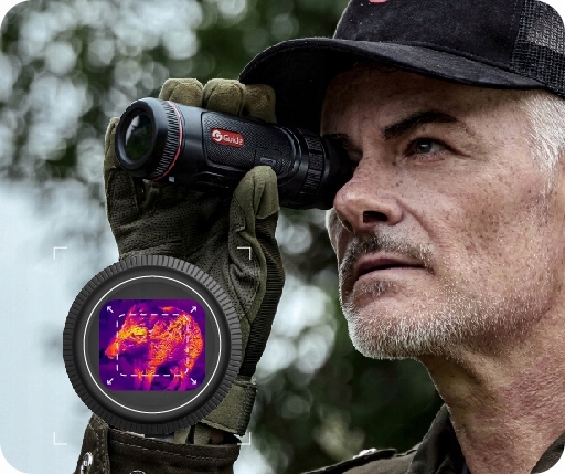 - Высокое качество изображения – Инфракрасный детектор с разрешением 256 × 192 пикселей и 12 мкм позволяет точно обнаруживать дичь даже в темноте.