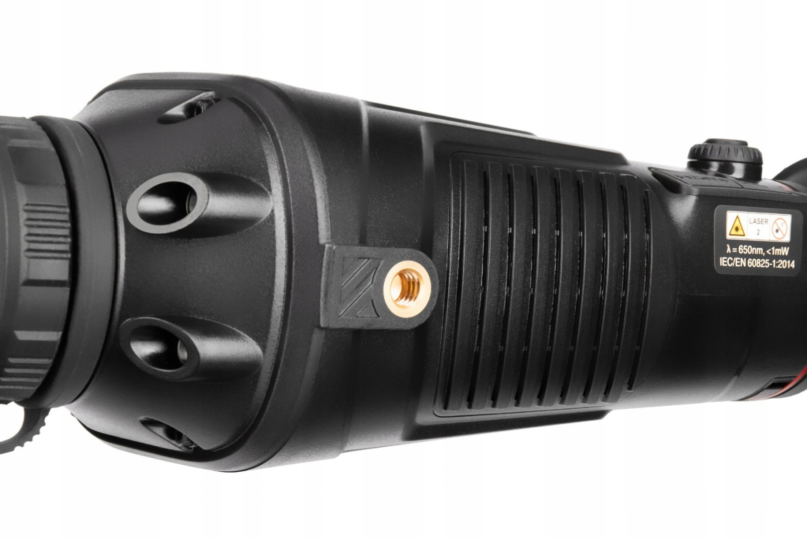 Источником питания является комплект из двух несъемных аккумуляторов общей емкостью 6000 мАч. Это позволяет тепловизионному монокуляру интенсивно работать до 5 часов. В функции прибора также входит крепление на штатив (резьба 1/4 дюйма) и водонепроницаемый корпус (класс защиты IP66).