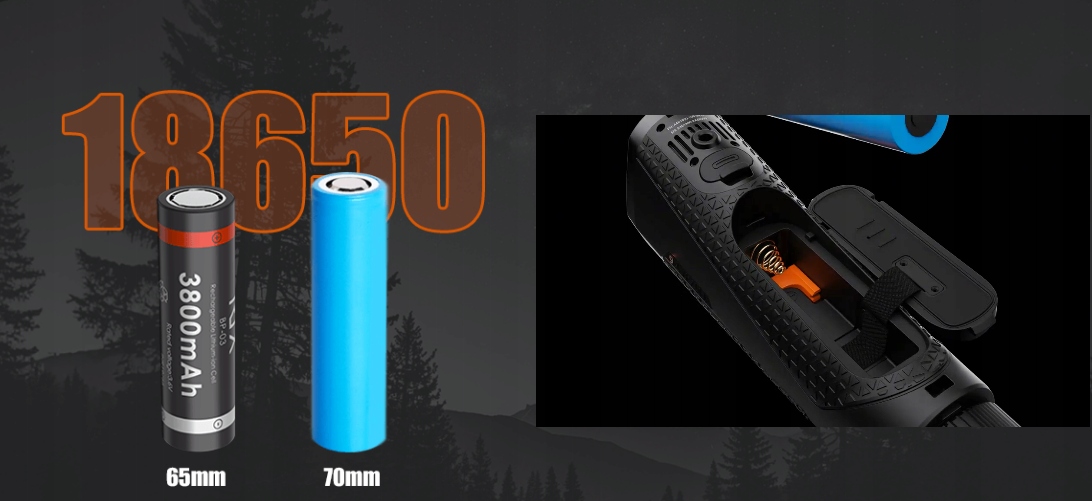 Запатентованная конструкция ручки TITAN гарантирует совместимость со всеми стандартными батареями 18650 без использования инструментов. В комплект входят две батареи, обеспечивающие до 10 часов работы и ночное слежение.