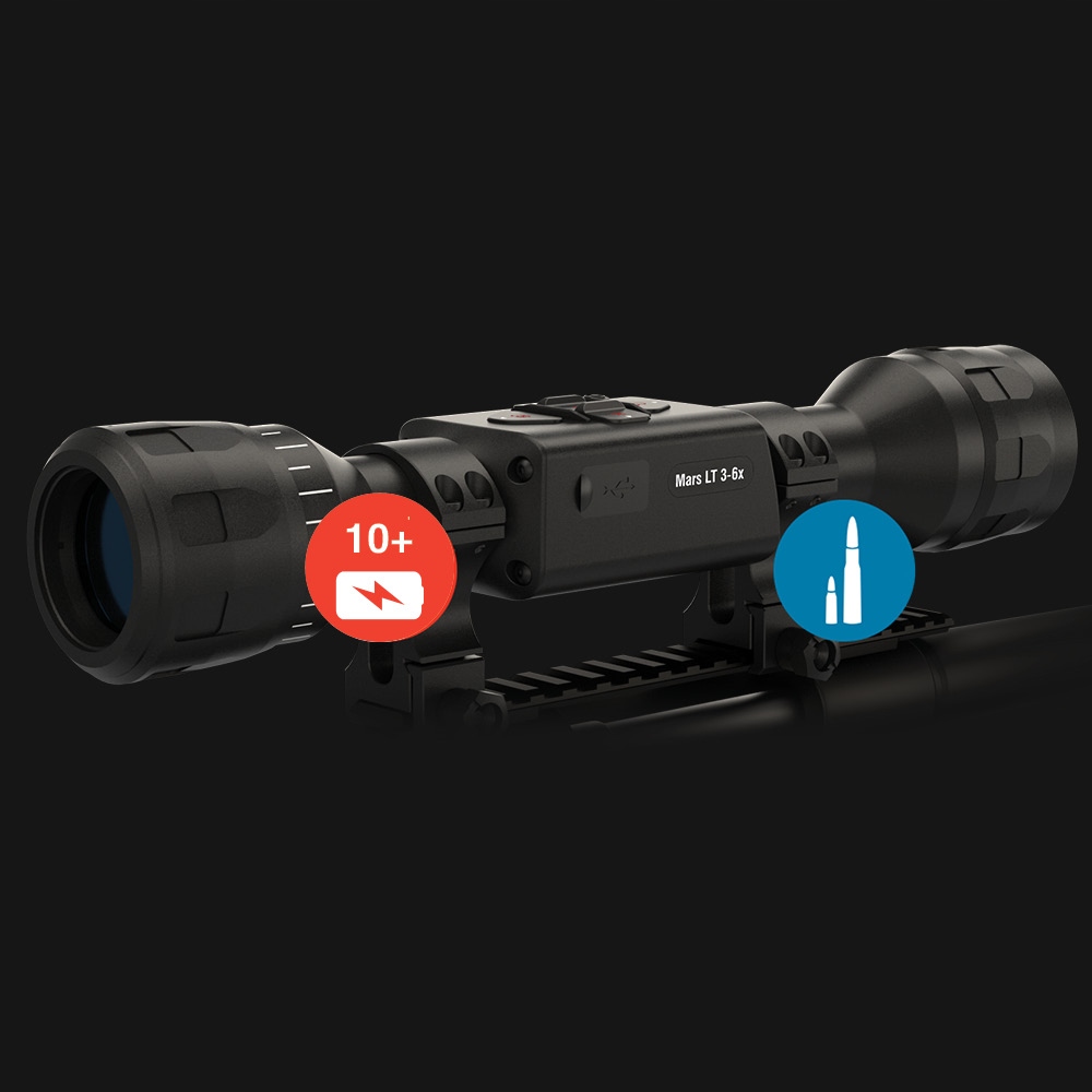 Прицелы Mars LT компании ATN представляют собой серию легких тепловизионных прицелов, подходящих для стрельбы на близких дистанциях. Mars LT от ATN – недорогой инфракрасный прицел, который предоставит возможность использовать современные охотничьи технологии даже начинающему любителю охоты. Доступны в различных конфигурациях с разным увеличением. Тепловизионный прицел Mars LT работает от аккумулятора в течение 10 часов, что позволяет использовать его непрерывно днем и ночью без необходимости подзарядки. Он также имеет функцию One Shot Zero, имеет различные варианты прицельной сетки и может крепиться на оружие с помощью стандартных колец диаметром 30 мм. Эта уникальная серия тепловизионных прицелов является частью растущего портфолио высокопроизводительных приборов ночного видения и тепловизионной оптики ATN, предназначенных для удобного и простого использования.