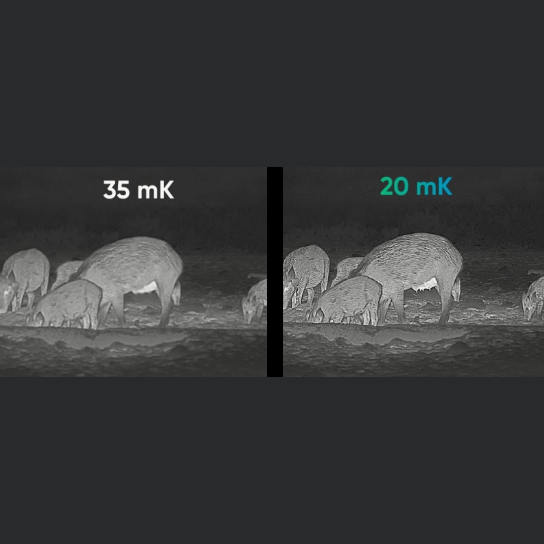 В тепловизоре FALCON FQ50 производитель применил более мощный сенсор с разрешением 640 × 512 пикселей, однако с гораздо меньшим размером пикселя — всего 12 мкм. Чувствительный детектор теплового изображенияVOX отвечает за предоставление изображения, записанного на больших расстояниях, независимо от погодных условий. Чувствительность оборудования в сочетании с экраном с более высоким разрешением обеспечивает четкое и детальное изображение.