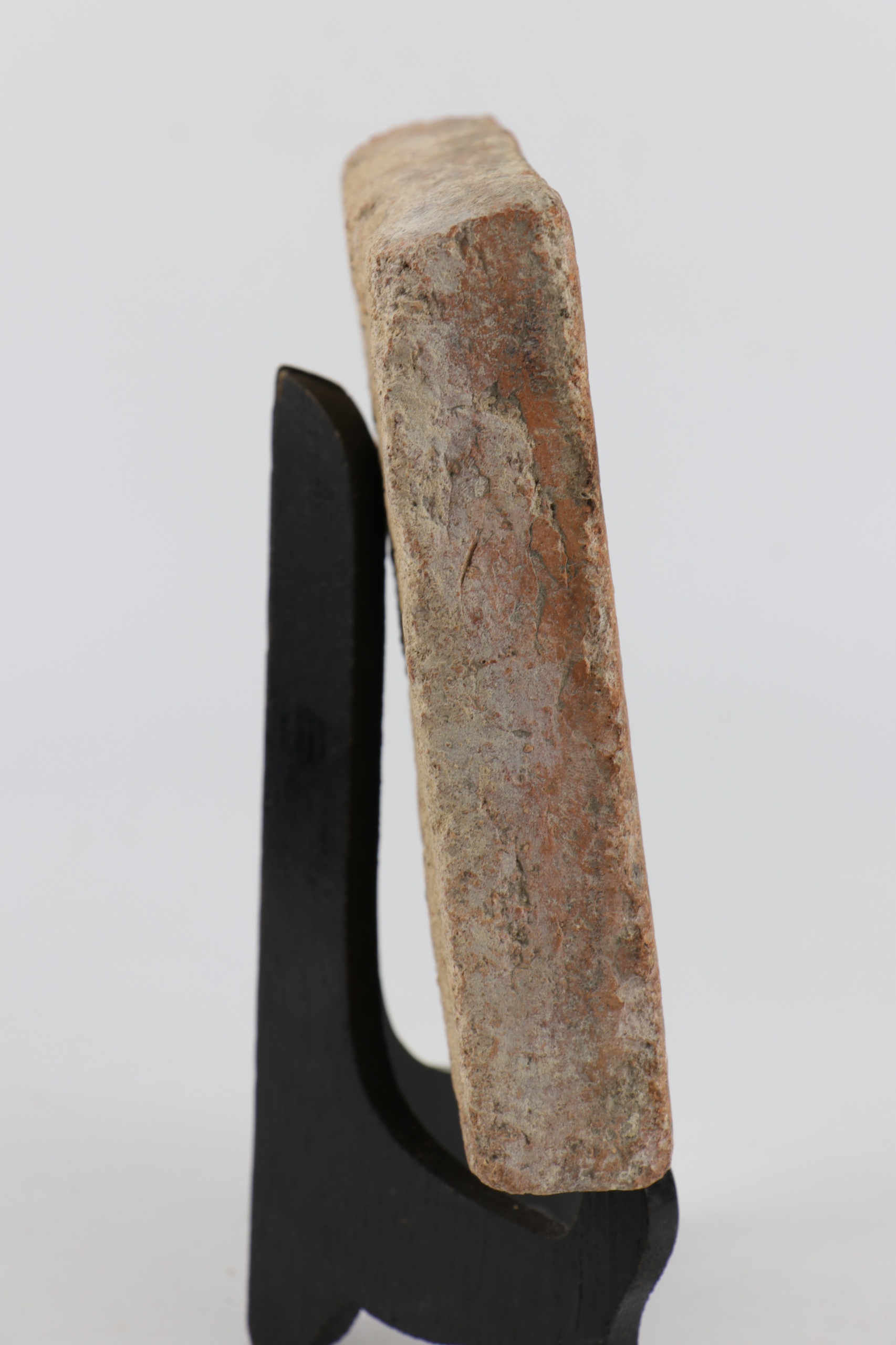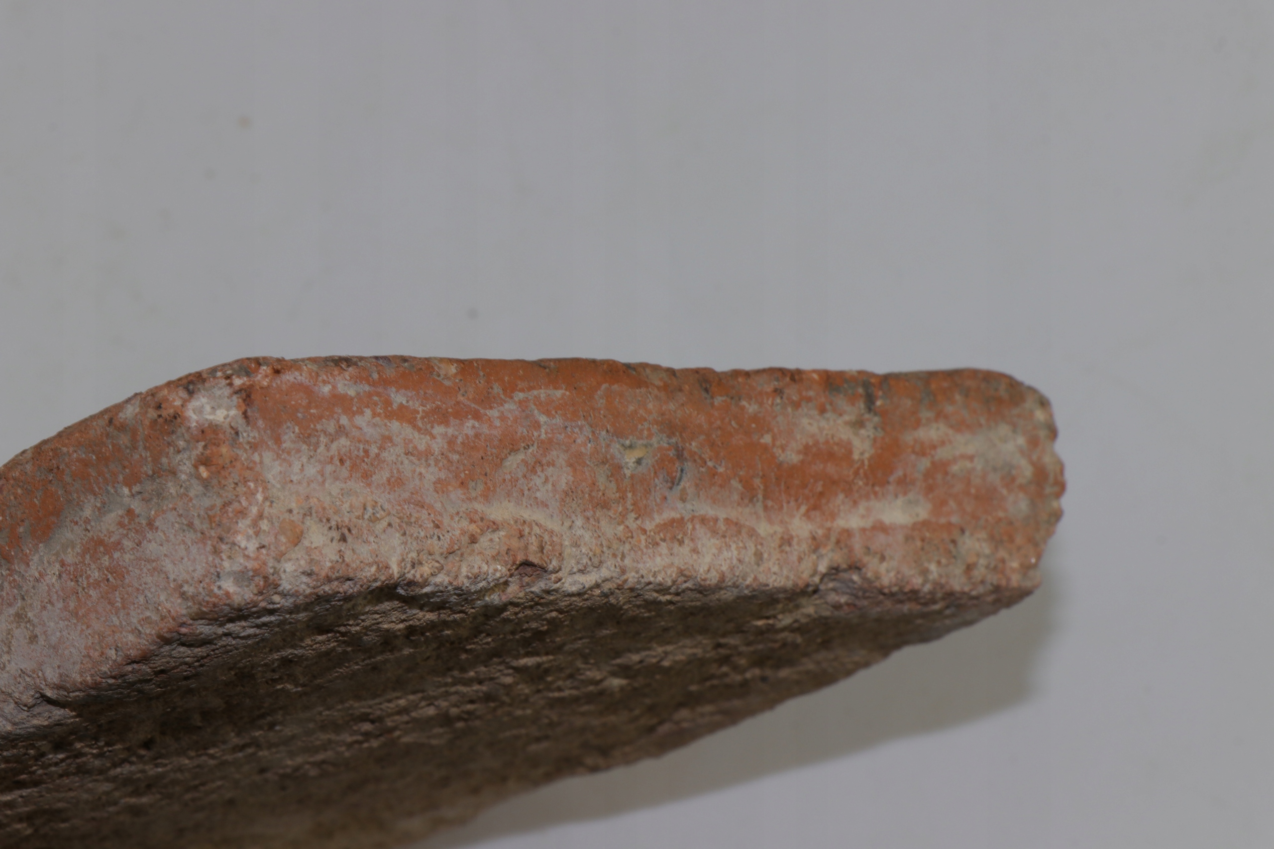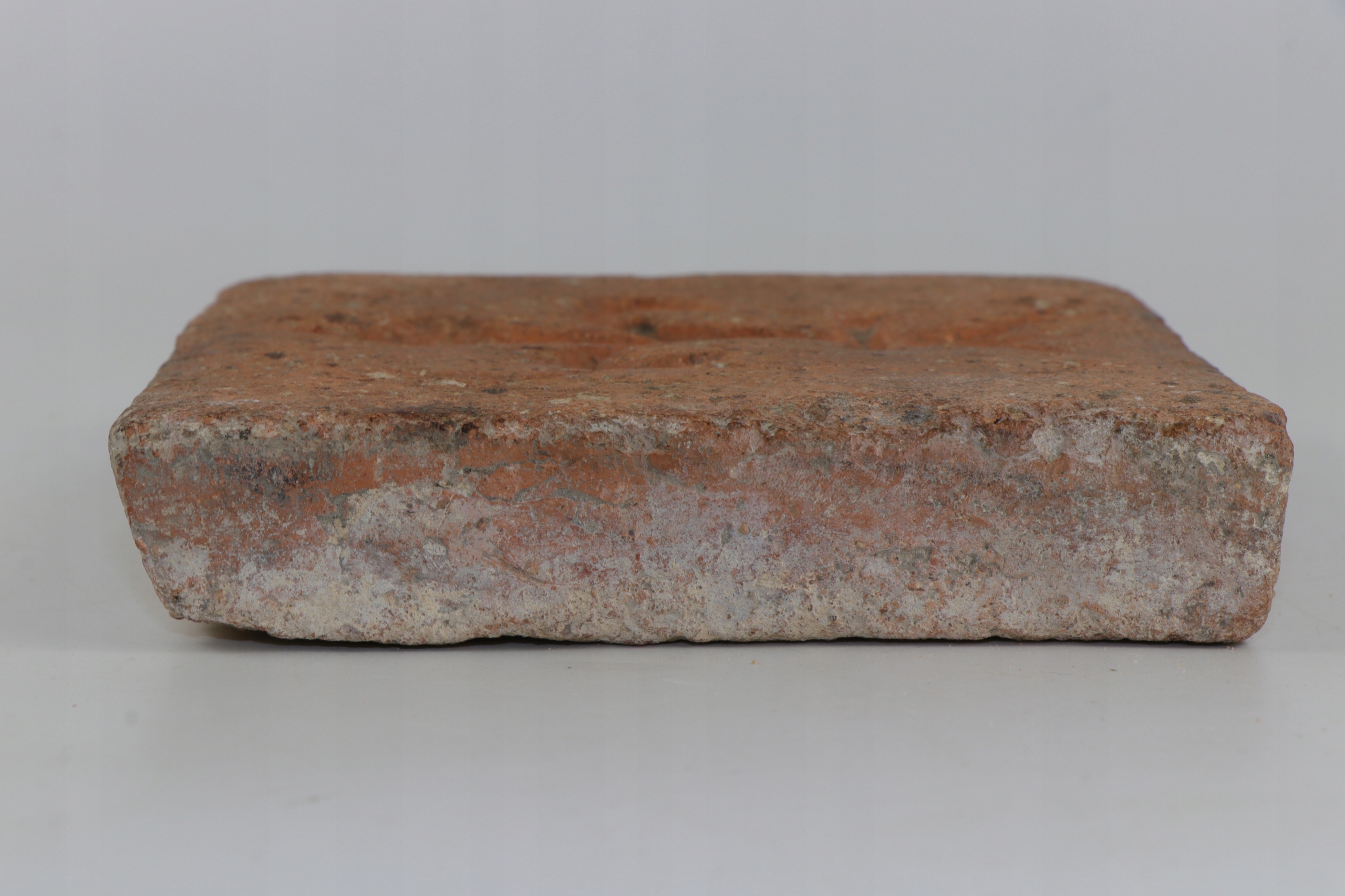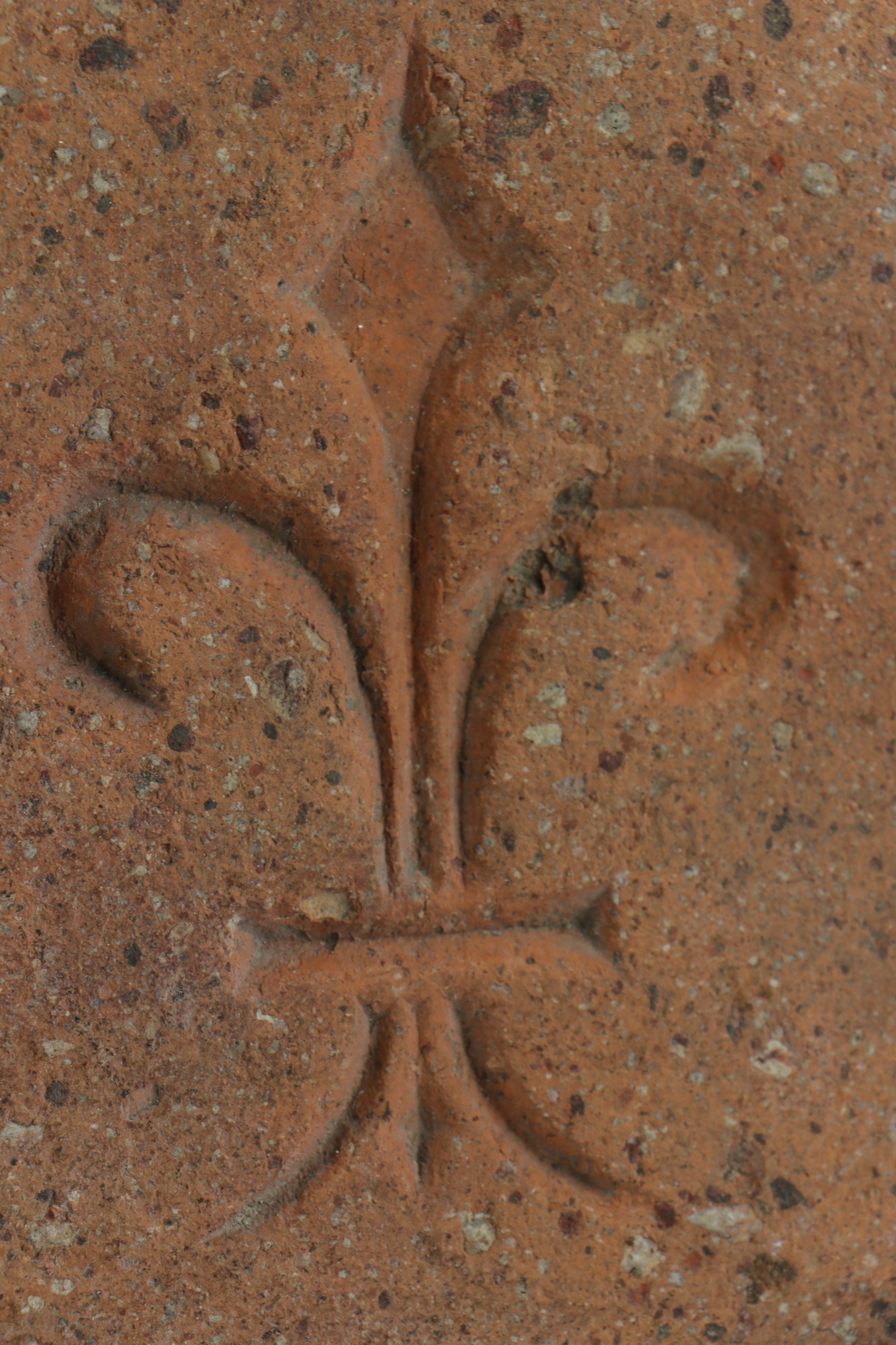 Интересная каминная фасадная плитка из неглазурованной терракоты, украшенная знаком «лилия». Плитки с мотивом лилии Fleur-de-lis использовались в светских и сакральных украшениях, использовались в качестве полов, а также в качестве элементов дизайна интерьера и отделки стен. Терракота в виде красного обожженного кирпича, неглазурованная, очень толстая, около 3 см, эти особенности указывают на то, что происхождение плитки относится к позднему Средневековью или эпохе Возрождения.