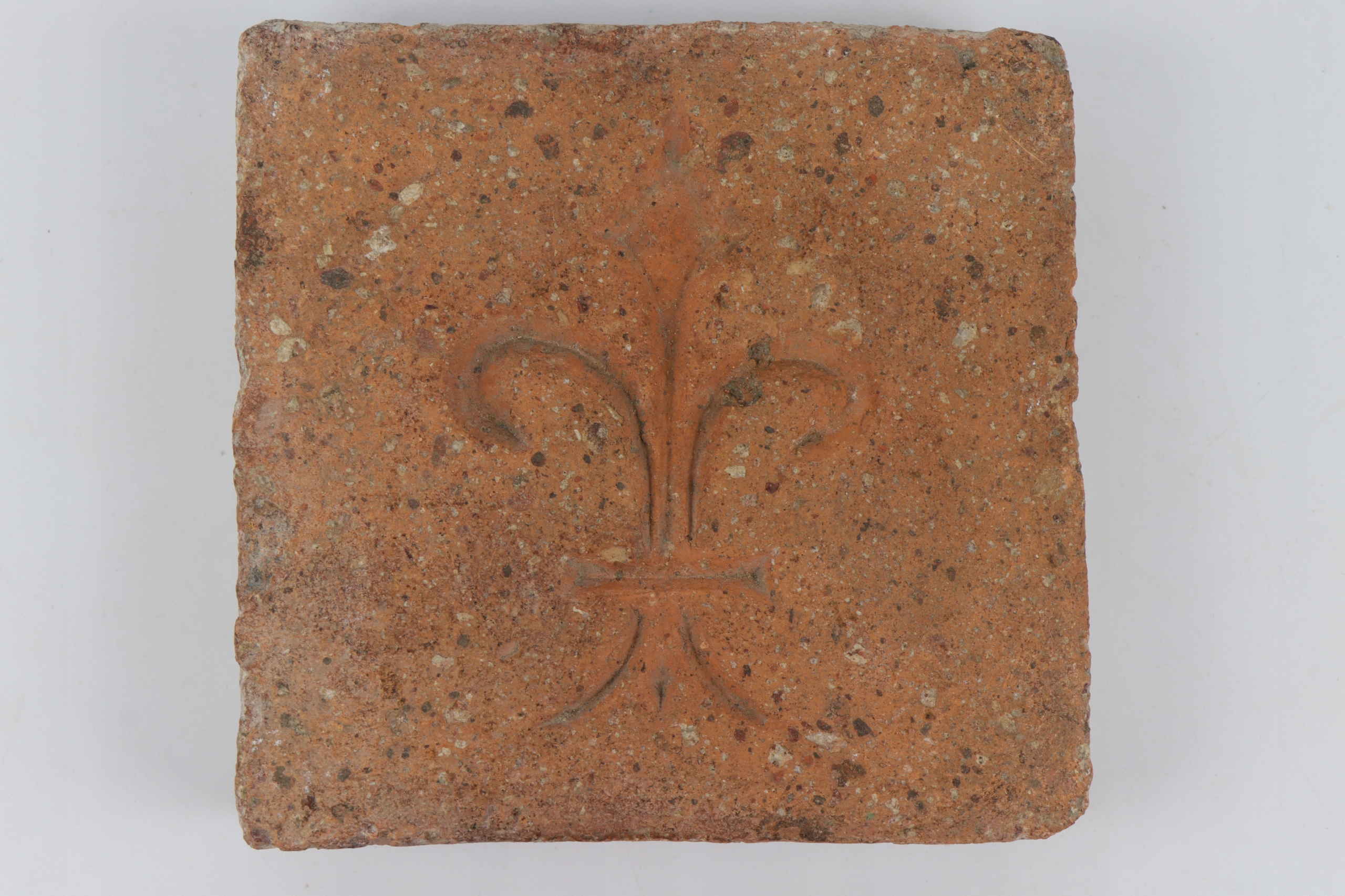 Терракотовая плитка 14-15 веков, Королевская лилия Средневековья, Франция, Антиквариат