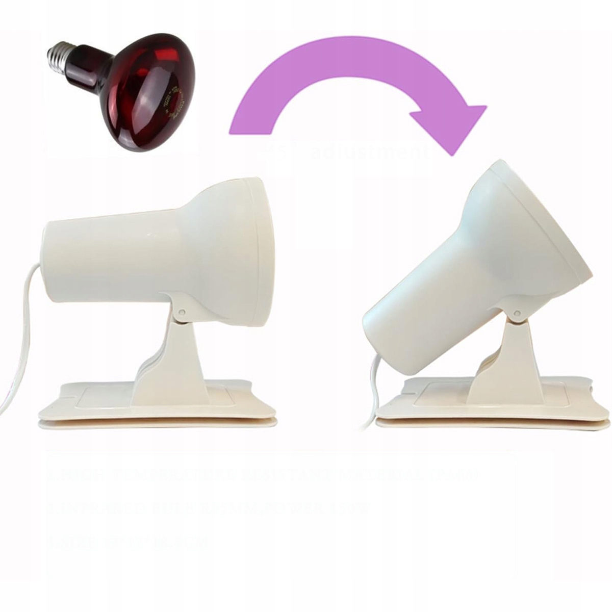 Инфракрасный свет нагревательной лампы глубоко проникает в кожу, успокаивает мышцы и улучшает кровообращение.