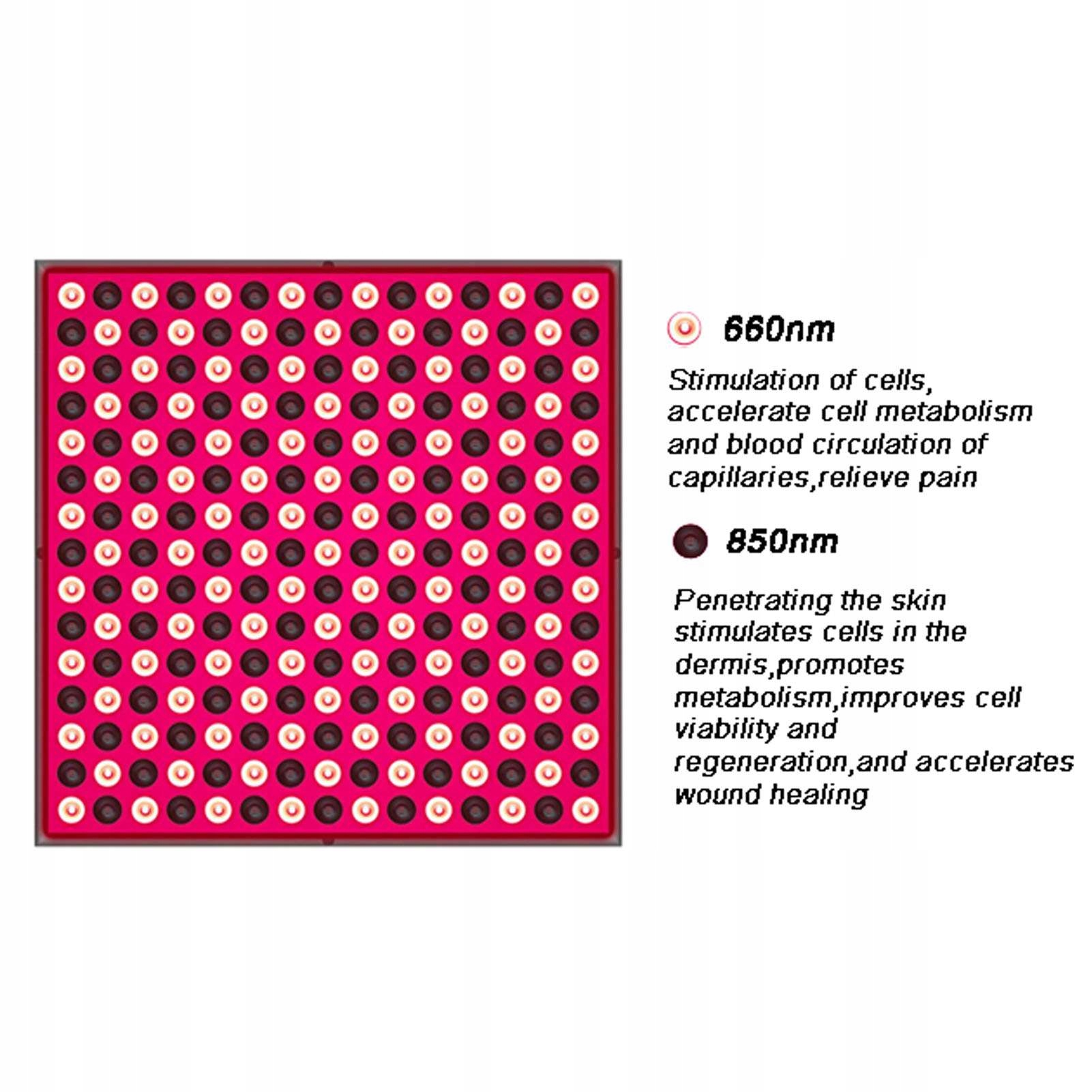 2. Инфракрасный свет 850 нм: Инфракрасный свет 850 нм выглядит темным, но работает хорошо, проникает глубже в кожу, увеличивая проникновение света через кожу к больному месту, более эффективно облегчая боль и обеспечивая клетки необходимой энергией для обновления питательных веществ и удаления отходов.