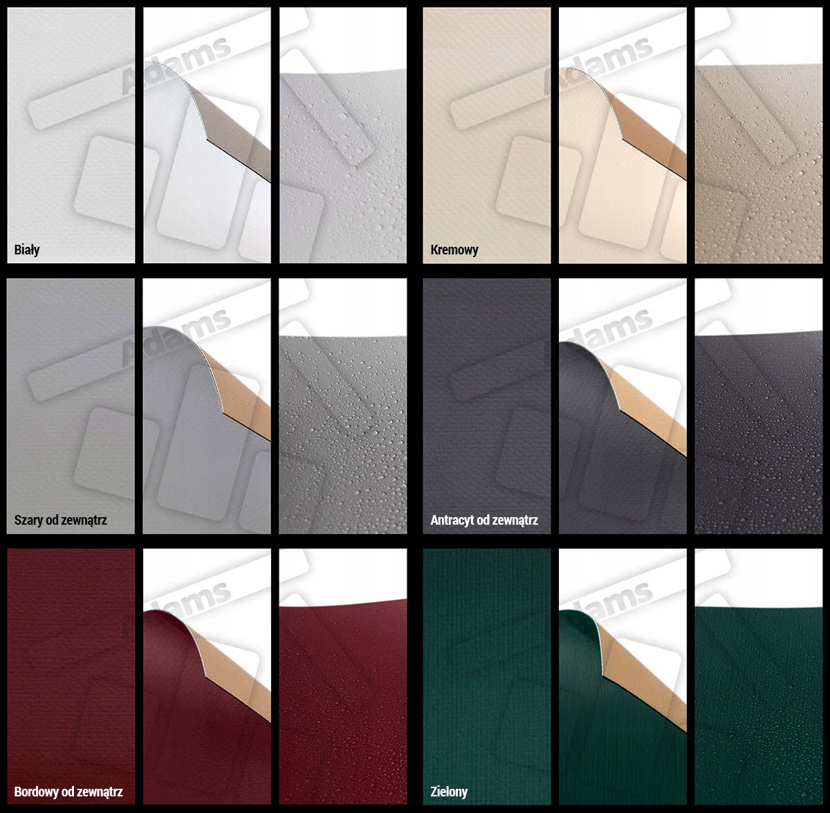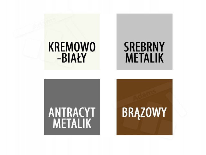 Мы можем выбрать 4 цвета структуры b> в соответствии с палитрой RAL в качестве стандарта. Структура состоит из других профилей, переднего луча, ручек, конечных крышек, механизма. Вы можете выбрать из таких цветов: крем - белый, похожий на RAL9010, серебро - металлик, похожий на RAL9006, антрацит - металлический, похожий на RAL7016 и коричневый, похожий на RAL8019.