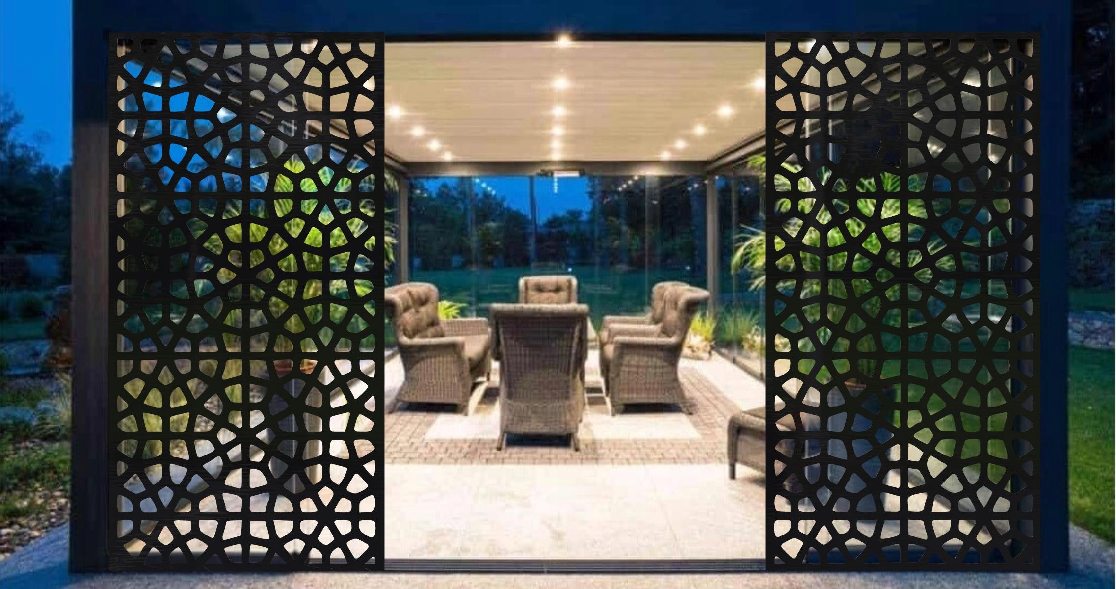 Вся конструкция панели может быть разработана таким образом, что шаблон на следующей панели является продолжением предыдущего шаблона. Панели легко установить могут использоваться в качестве ограждения, ворот, ворот, балюстрады, потолочной отделки, декоративных стен внутренних дел и альтов, садовых крыш, садовых крыш, пергол и террасовых зданий. В каждом элементе мы можем сократить готовые отверстия для заклепок или монтажных ручек в соответствии с потребностями клиента.