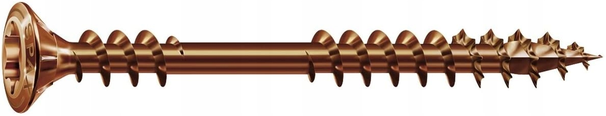 - Волнистый профиль резьбы SPAX - запатентованная резьба начинается с самого кончика шурупа, обеспечивая быстрое завинчивание с первого оборота, втягивает шуруп глубоко в материал и тонет между волокнами, сводя к минимуму их разрезание и разрушение, что помогает сохранить однородную структуру древесины