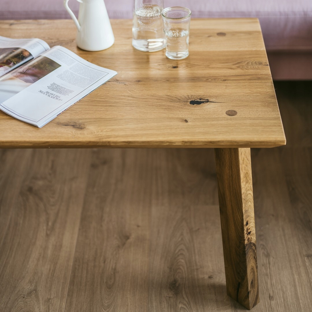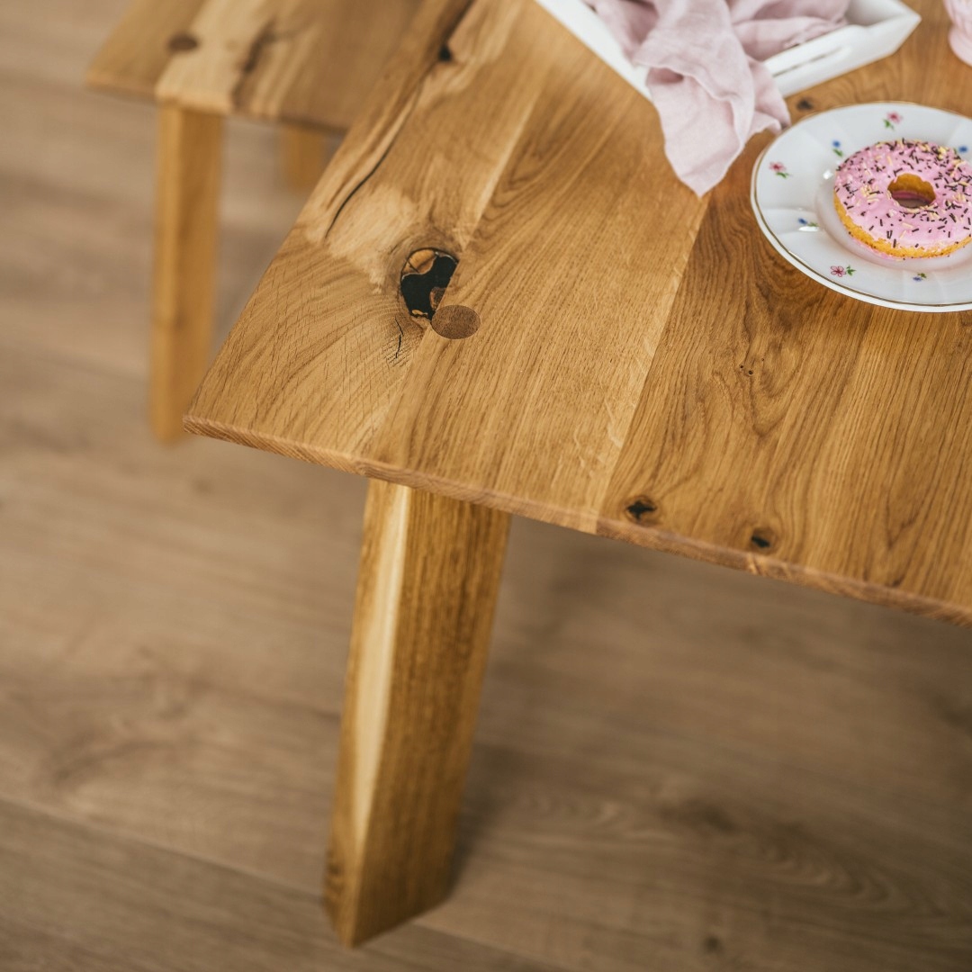 Для герметизации столярных соединений мы использовали вставки из красивого ореха, который контрастирует идеально сочетается с польским дубом.