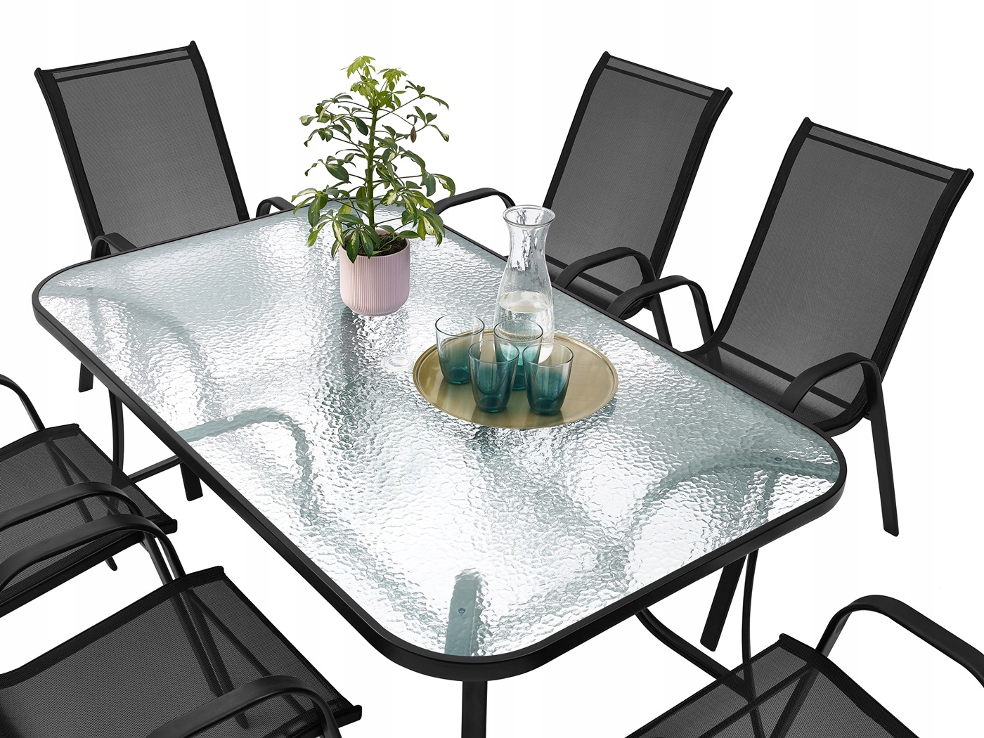 Стеклянный стол идеально подходит для вашего сада. Каркас имеет двойное порошковое покрытие, что делает этот продукт идеальным для использования как внутри, так и снаружи помещений. Используемые материалы не требуют частого ухода, устойчивы к погодным условиям и не требуют специальных средств по уходу. Ножки дополнительно оснащены пластиковыми чехлами. Столешница имеет столешницу из прозрачного закаленного стекла. 5 мм.