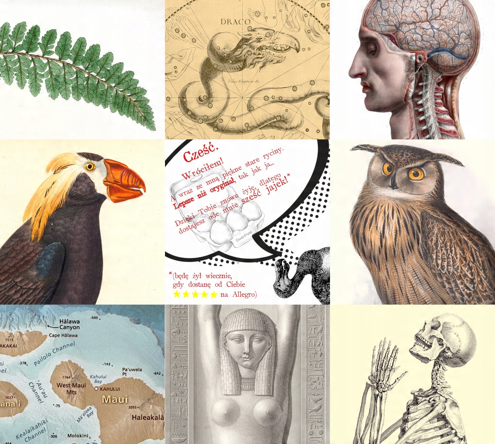 Мы также предлагаем репродукции других произведений из различных областей: астрономии (красивые созвездия из атласа Иоганна Гевелия и других авторов, карты неба, Луны), анатомии, ботаника, зоология, карты - одноцветные и цветные. Вы ищете конкретную тему? Спросите нас, мы подготовим ее специально для вас.