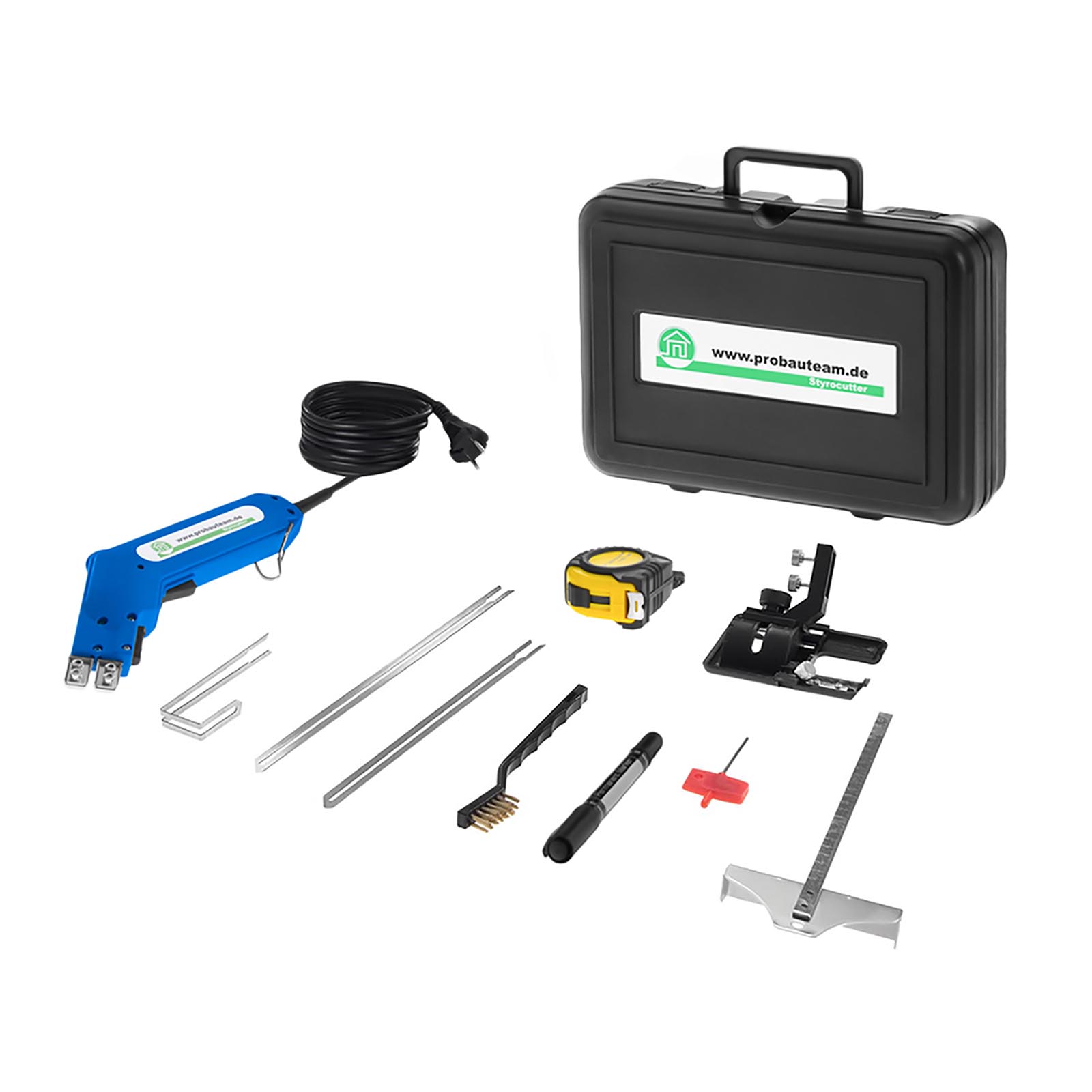 Нож для резки пенополистирола STYRO CUTTER PBT03 от Pro Bauteam — профессиональное устройство, предназначенное для беспыльной резки пластмасс, таких как полистирол, полипропилен, полиэтилен или стиродур. Он будет хорошо работать в строительных компаниях, выполняющих теплоизоляцию зданий, а также там, где необходимо точно распилить, придать форму и долбить изоляционные плиты.