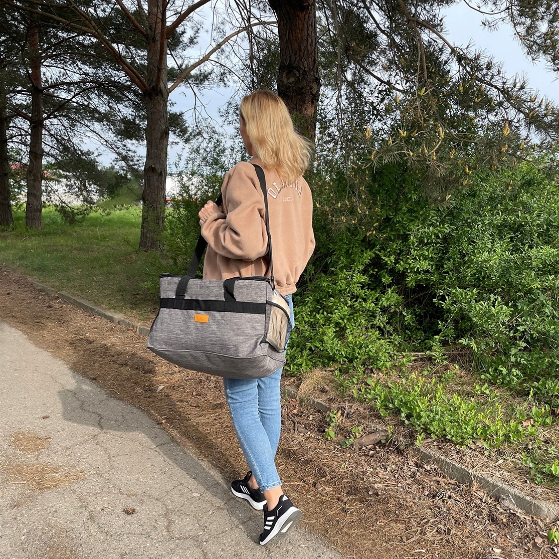 Сумку можно носить в руке, ручки застегиваются на прочную липучку, а можно удобно повесить на плечо с помощью прочного регулируемого ремня, который можно в любой момент отстегнуть. Благодаря этим вариантам переноски вы можете адаптировать сумку к своим предпочтениям и потребностям.