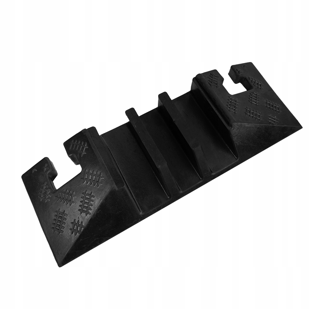 Наконечник выполнен из резиновой смеси, что делает его прочным, гибким и устойчивым к деформации. Банка из твердой резины. выдерживает очень высокое давление, легко справляется с проездом тяжелого автомобиля. Терминация имеет три кабельных канала. Изделие совместимо с 3-х кабельным пандусом 90x60 и 3-х кабельным угловым пандусом.