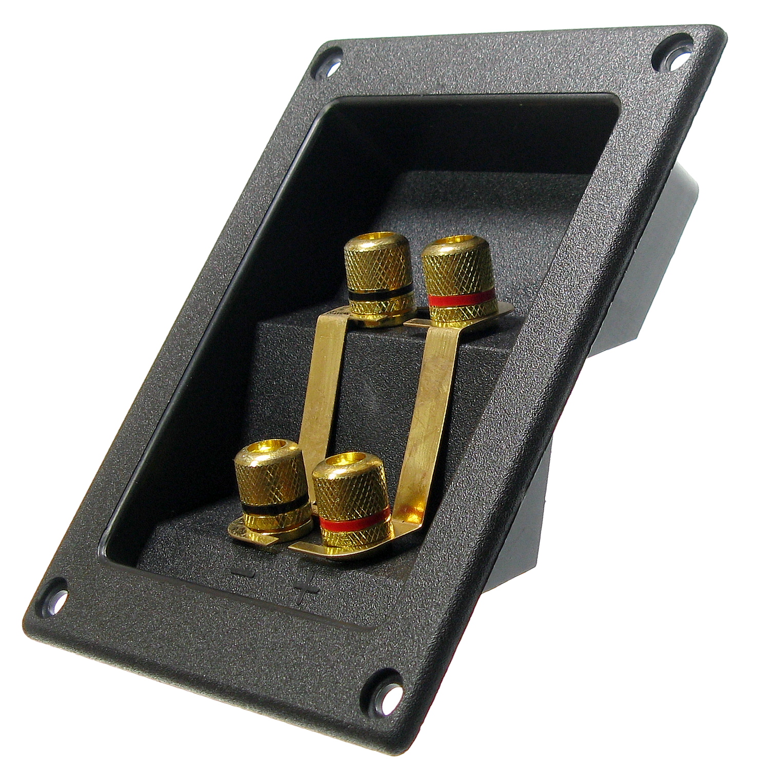 Прямоугольный разъем для громкоговорителя 122x94 мм с 4 гнездами типа «банан» и перемычкой.
