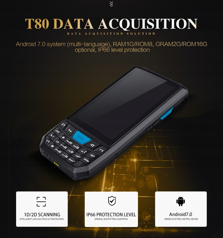 Промышленный сборщик данных T80 с Android 9.0, работающий через Wi-Fi или 4G LTE