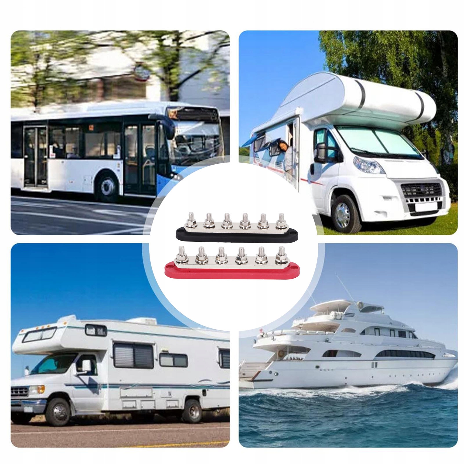 4, ПОДХОДИТ ДЛЯ ТРАНСПОРТНЫХ СРЕДСТВ И ЛОДОК 12 В–48 В: служит точкой сбора отрицательных проводов в автомобилях, лодках и яхтах, обеспечивая аккуратное и организованное решение.