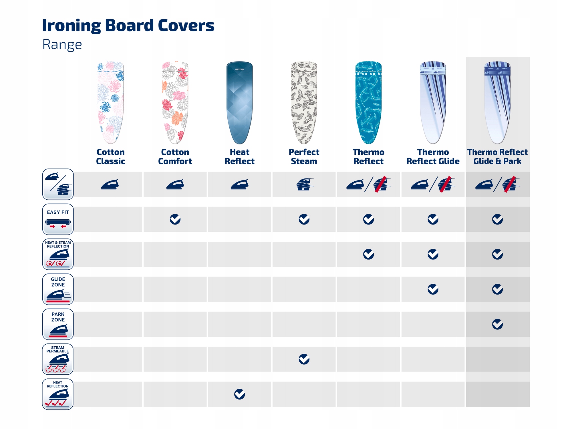 Thermo Ofter Enluge Glide & Park L/U. Марек Лейфхайт использовал много решений, которые значительно улучшают качество работы для производства этой модели. Крышка была сделана из прочного материала, который был покрыт титаном. Благодаря этому пара и тепло утюга отражаются от ее поверхности, которая значительно ускоряет глади и дополнительно сглаживает ткани. Эта модель также имеет две зоны - бег и парковка. Первый из них заряжает железо электростатически и улучшает его свинец после материала. Второй теплостойкий и позволяет безопасно остановить горячее железо. Фонд Молтона толщиной 3 мм дополнительно увеличивает комфорт работы. Универсальный размер Thermo отражает Glide & Park Cover Leifheit позволяет использовать его для всех плат с максимальными верхними размерами 140 х 45 см. Это здорово с моделями от Air Board и паровых утюгов. Благодаря гибкому поясу с зажимом и особым легким прикреплением, крышкой очень легко надеть и поддерживать соответствующее напряжение. Модель Thermo Outlive Glide & Park сертифицирована, что гарантирует безопасное использование. Цвет обложки хорошо адаптируется к окружающей среде. Это было произведено в Европе. Крышка для Thermo отражает Glide & Park L/U, не покрывается гарантией производителя.