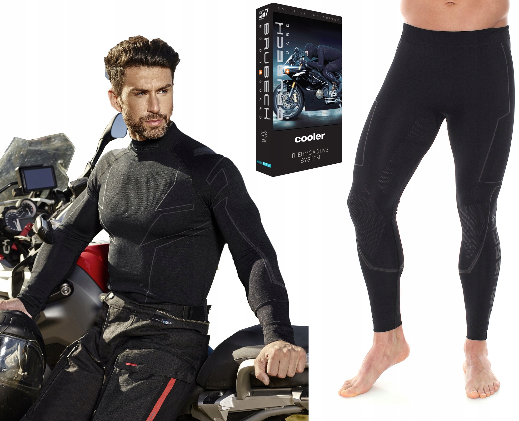 МУЖСКОЕ МОТОЦИКЛНОЕ НИЖЕ BRUBECK COOLER - Серия Cooler создана для того, чтобы обеспечить любителям мотоциклов максимальный комфорт и ОХЛАЖДАЮЩИЙ ЭФФЕКТ во время езды летом!!!! Пряжа NILIT BREEZE, использованная в этой модели, обеспечивает приятную прохладу и освежение, когда тело чрезмерно потеет под мотоциклетной одеждой. Используемая современная пряжа способна ОХЛАЖДАТЬ ПОВЕРХНОСТЬ КОЖИ НА 1°С!!! Термоактивная мотоодежда COOLER идеальна не только для езды на мотоцикле, квадроцикле, но и для езды на велосипеде или других видов деятельности, где необходимо снизить температуру тела