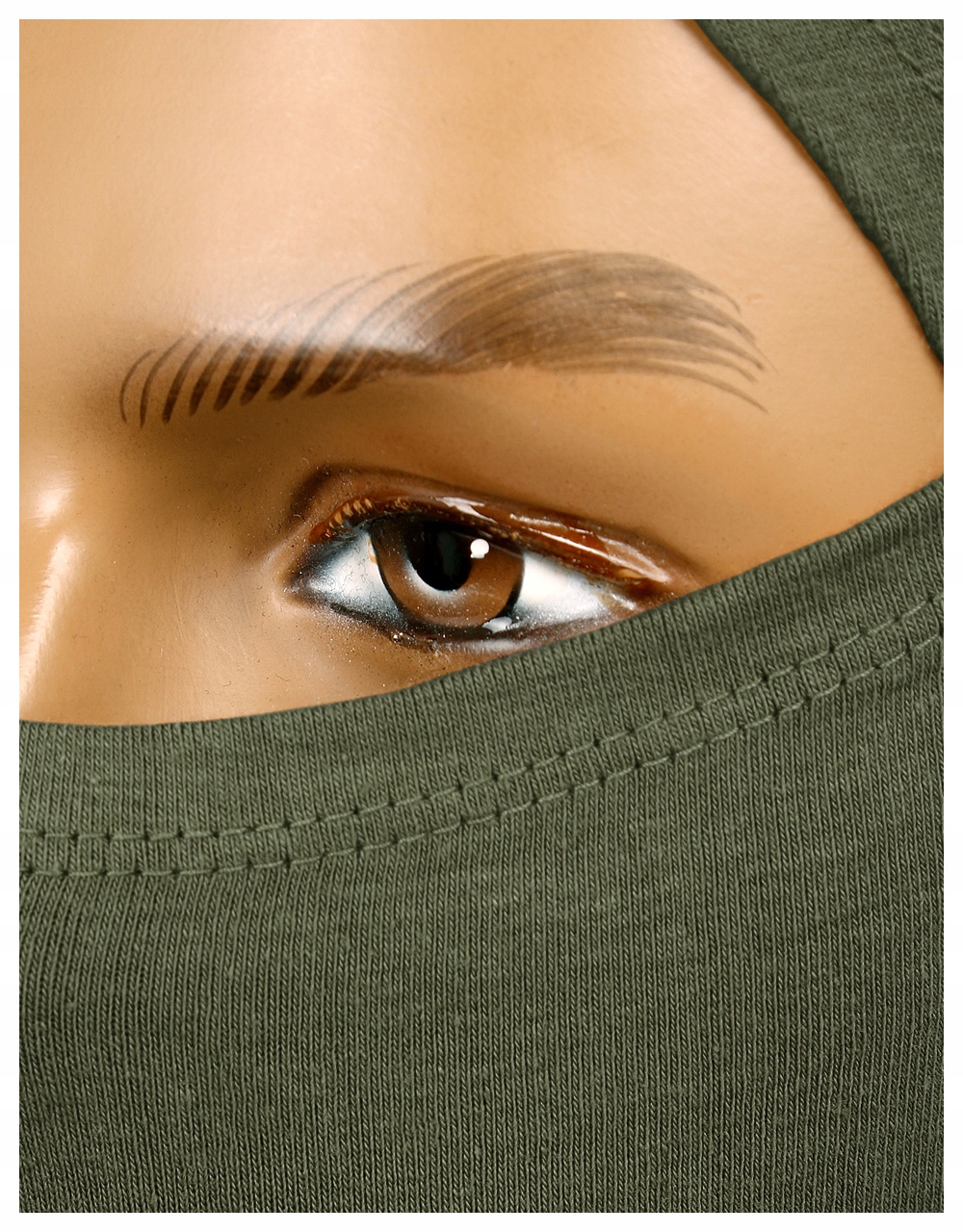 Изготовлен из комбинации приятного на ощупь хлопка. (92 %) и лайкра (8%), придающая материалу эластичность. Балаклава не вызывает раздражения и эффективно защищает лицо от холода и ветра.