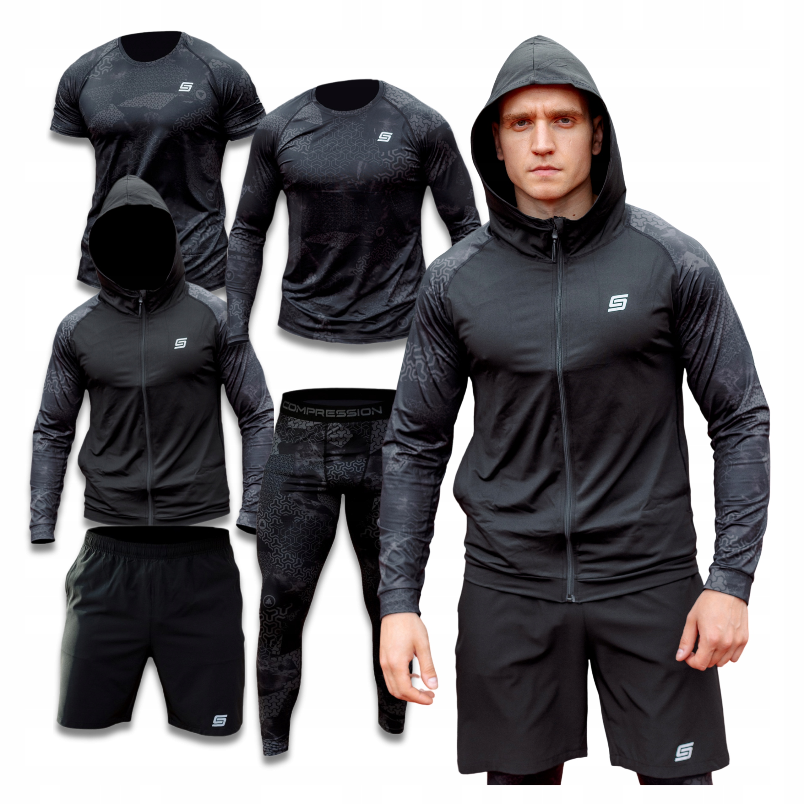 ТЕРМОАКТИВНЫЙ ТРЕНИРОВОЧНЫЙ КОСТЮМ RASHGUARD БРЮКИ ШОРТЫ МУЖСКОЙ КОМПЛЕКТ 5в1